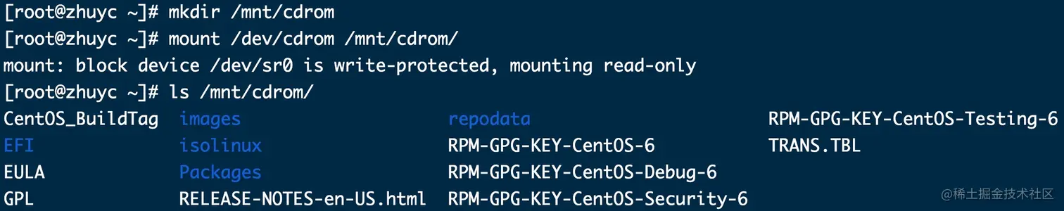 光盘镜像挂载后,会在/dev下被识别为cdrom,使用如下命令进行挂载: