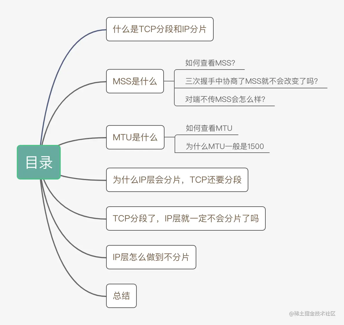也就是说,正常情况下,在一台机器的传输层到网络层这条链路上,如果传输层对数据做了分段,那么IP层就不会再分片。如果传输层没分段,那么IP层就可能会进行分片。