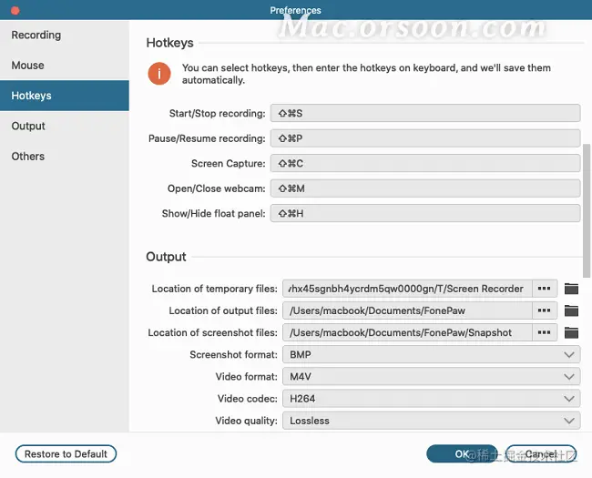 注意:如果您不想总是单击按钮开始或停止录制,则热键可能对您有所帮助。转到“首选项”进行设置。