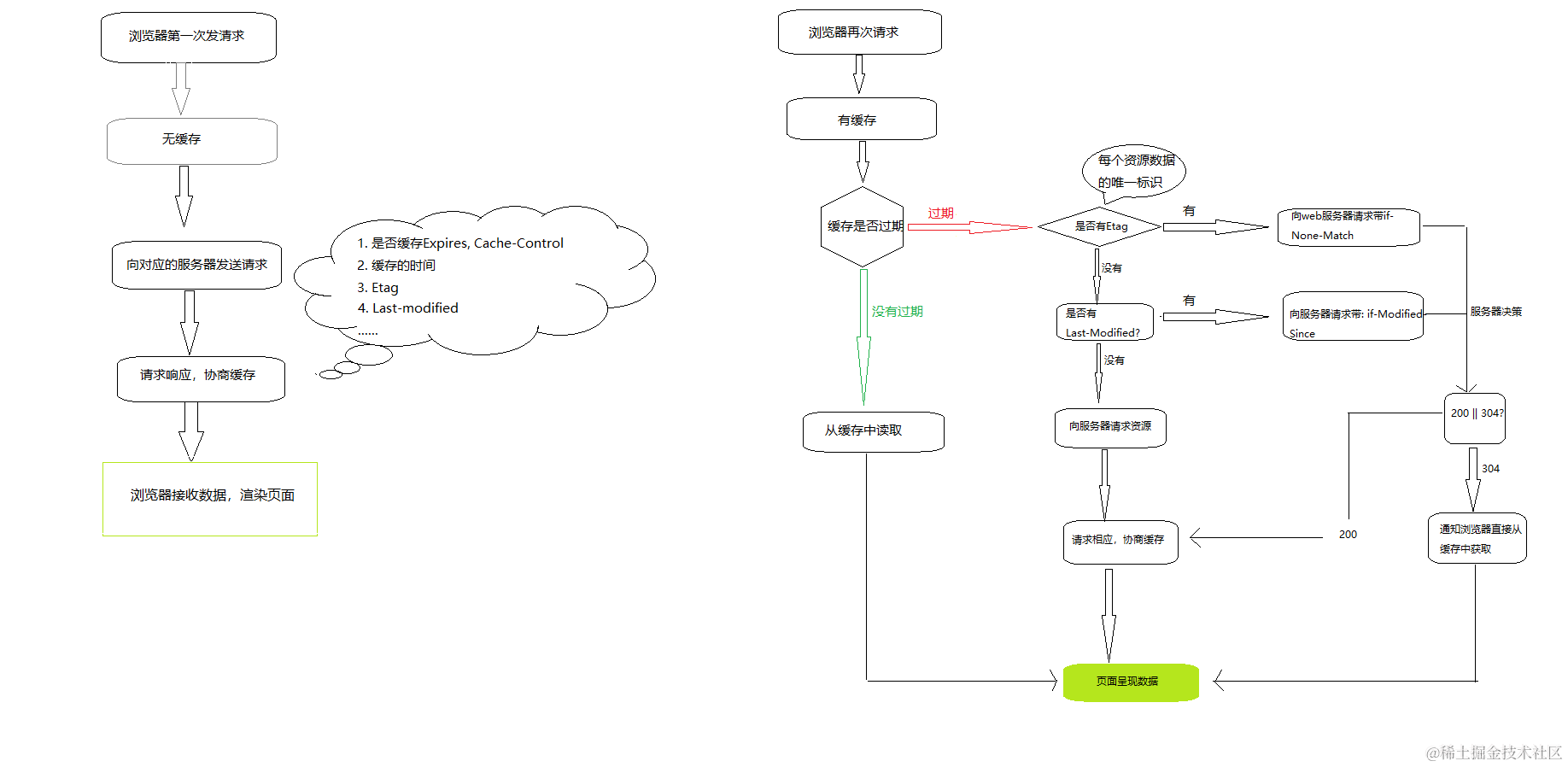 - 利用Etag能够更加准确的控制缓存,因为Etag是服务器自动生成或者由开发者生成的对应资源在服务器端的唯一标识符。