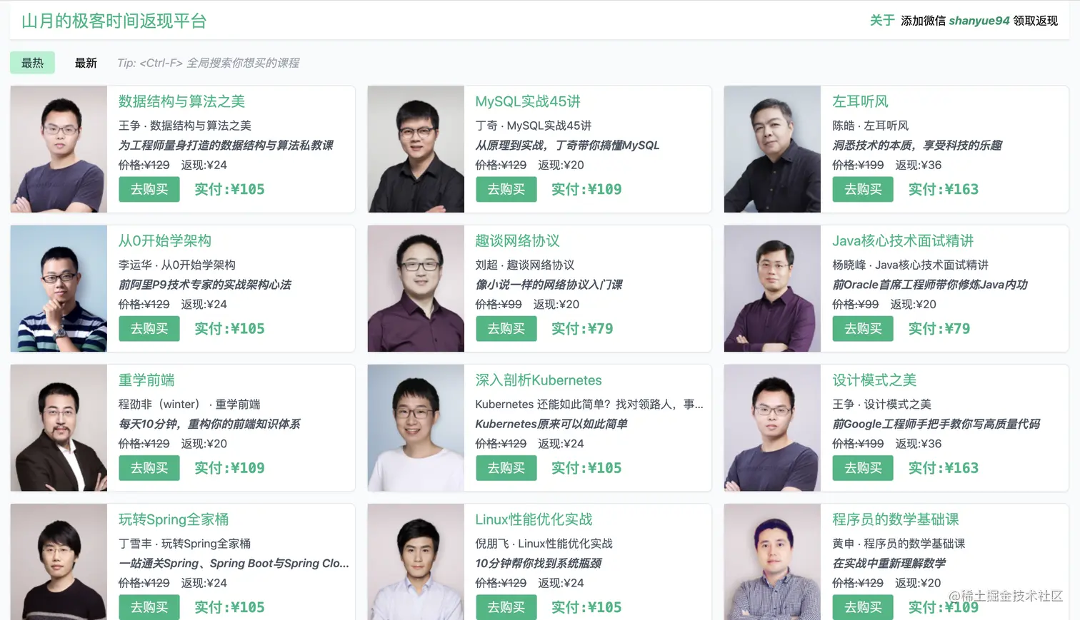 自己曾做过很多个大小网站,但都逃不过两点,一是丑,二是没图标。比如以前做的极客时间返现平台,既没有 logo,还长得丑。