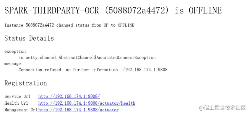 有时候我们想既发送邮件,也发送短信的形式来保证服务出现问题第一时间感知,我们可以自己编写一个类继承AbstractStatusChangeNotifier 实现onNotify方法具体写自己的短信逻辑就可以了,但是我们会发现,这样操作的话,每次只会发送短信,不会发送默认的邮件了,这是由于mailNotifier 使用自动装配机制(不了解自动装配的可以查看这篇文章www.jianshu.com/p/c56c34c1c…