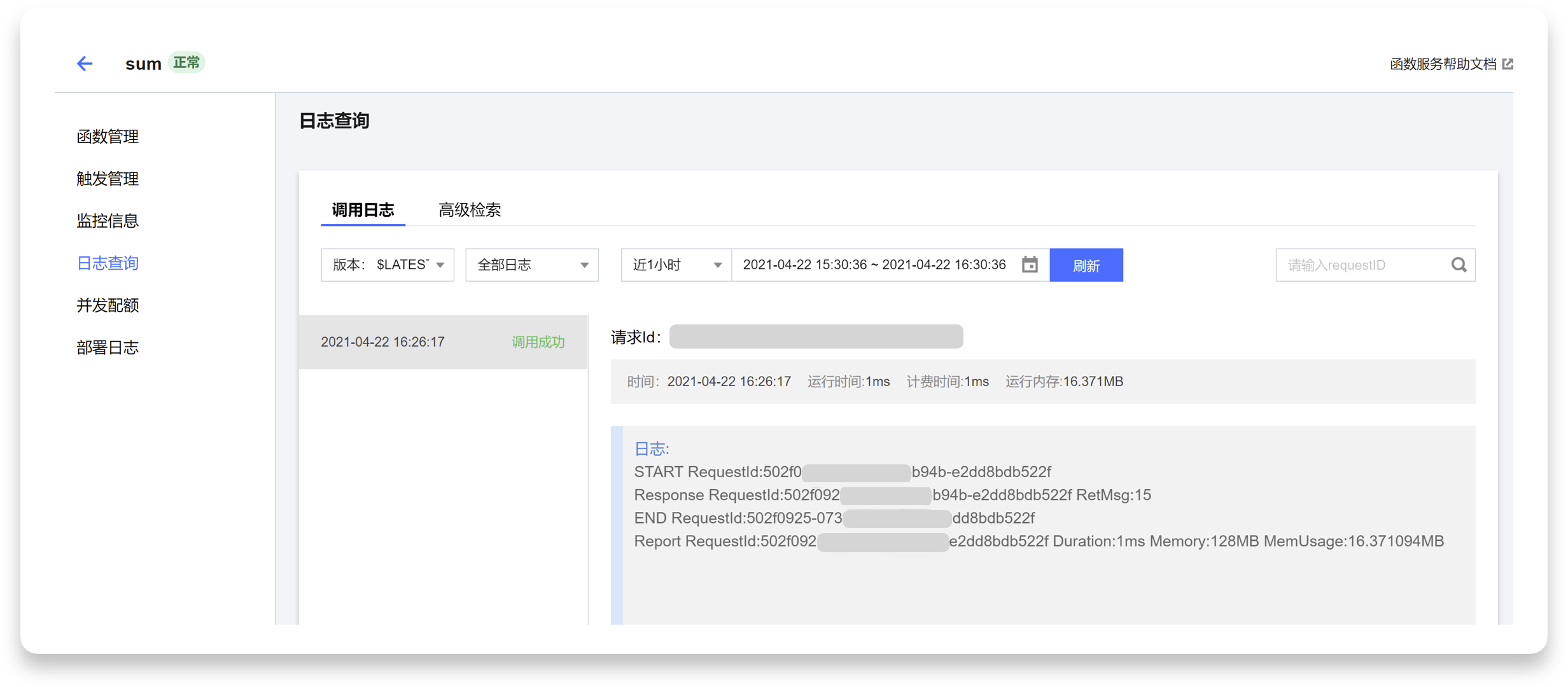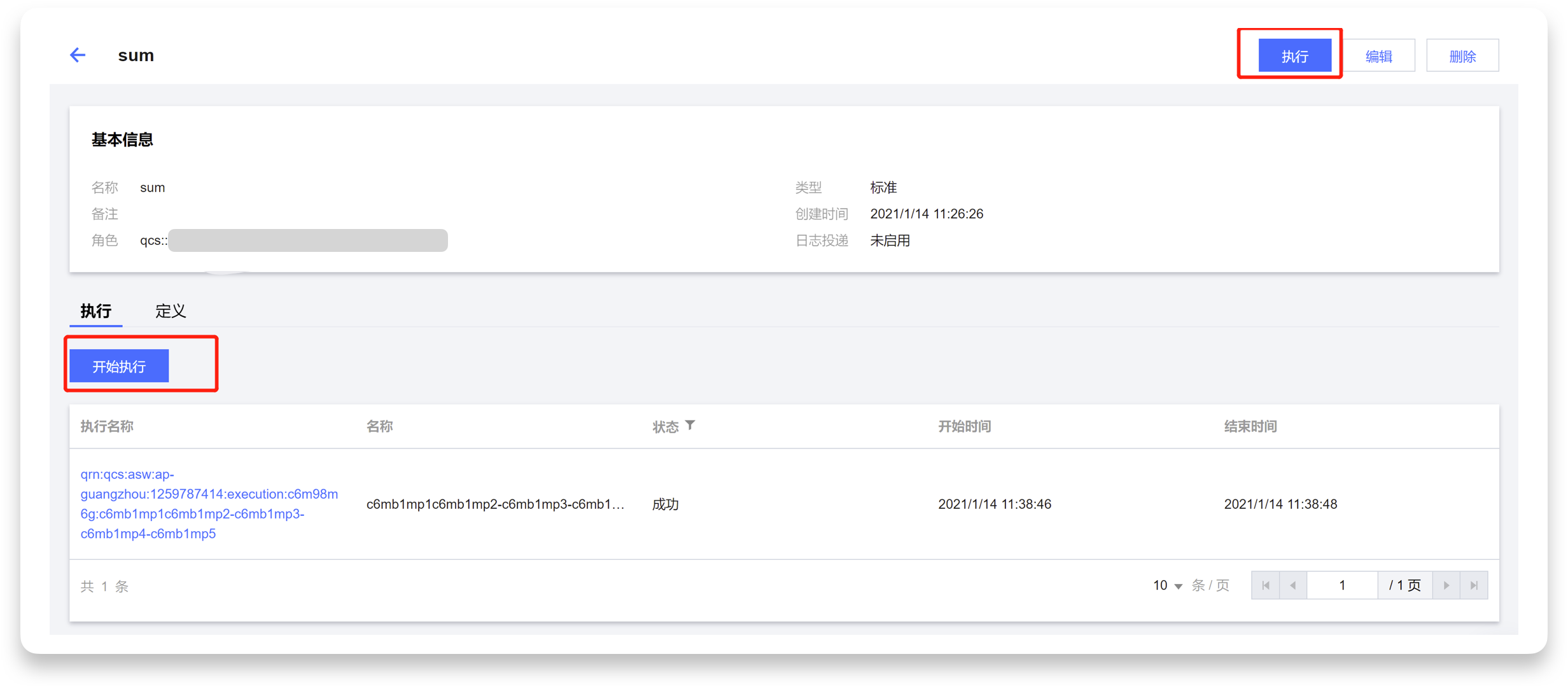 - 在当前页面最下方,在「执行历史记录」,点击「资源」中的云函数链接,可以直接跳到云函数控制台,查看函数执行详情。
