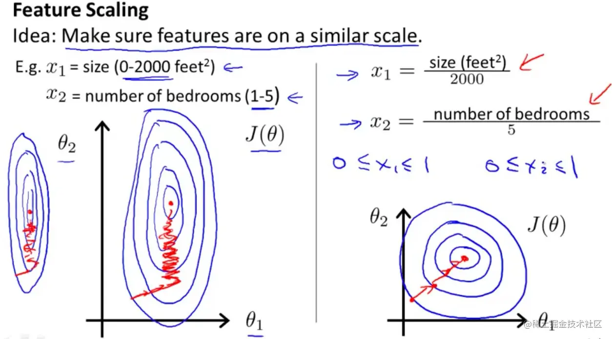 面对多维度特征问题,我们需要保证这些特征具有相近的尺度,帮助梯度下降算法更快地收敛。