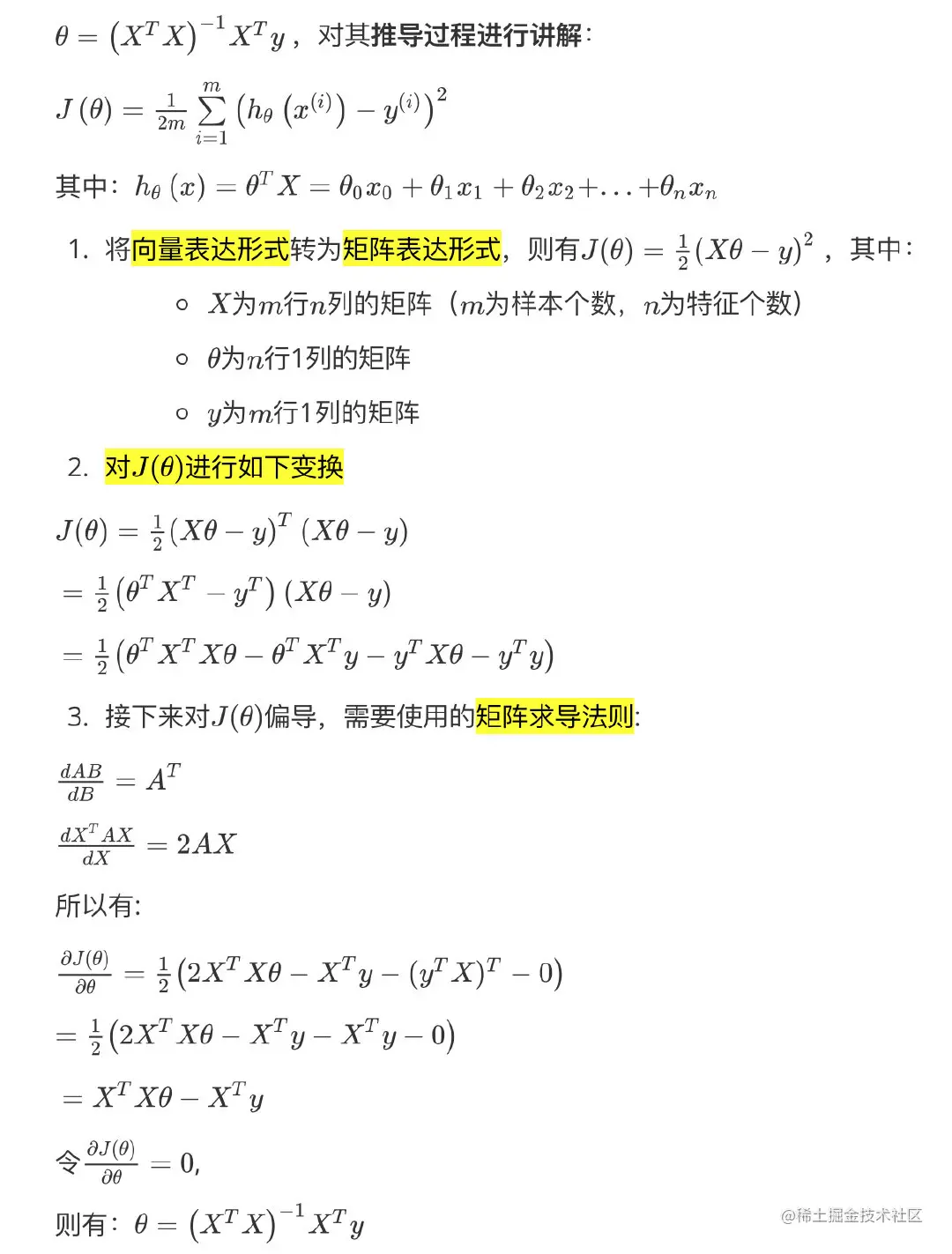 θ=(XTX)−1XTy ,对其推导过程进行讲解: