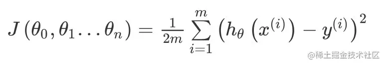 J(θ0,θ1...θn)=2m1i=1∑m(hθ(x(i))−y(i))2