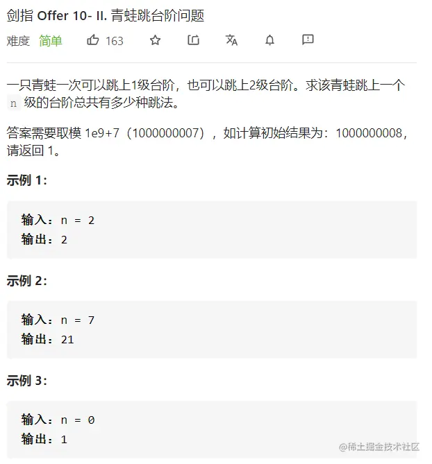 // 当台阶数大于2的时候,我们只用考虑最后一步的跳法