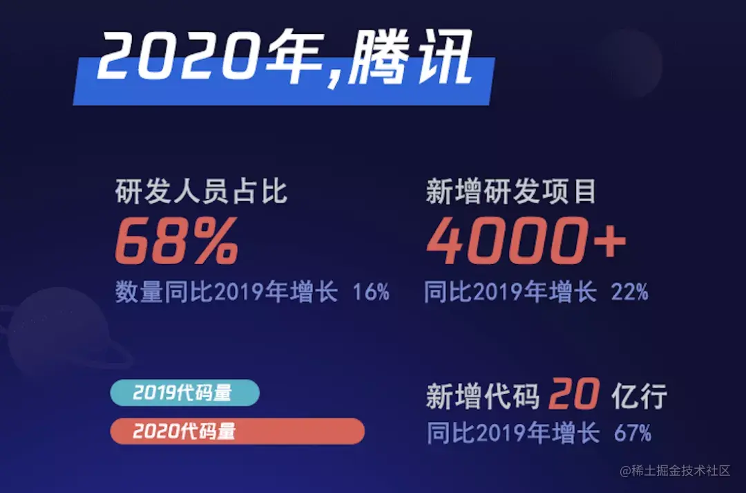 1、2020年鹅厂新增20亿行代码,研发员工占比68%