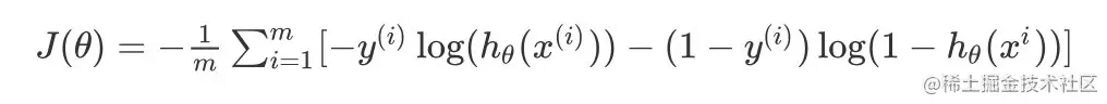 J(θ)=−m1∑i=1m[−y(i)log(hθ(x(i)))−(1−y(i))log(1−hθ(xi))]