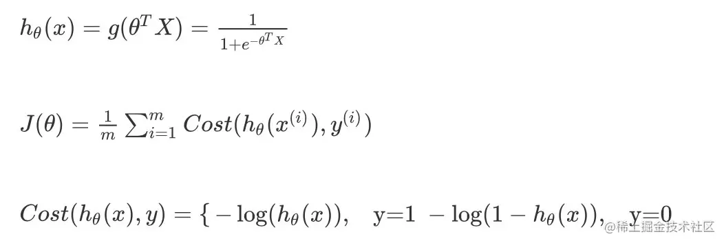 Cost(hθ(x),y)=−ylog(hθ(x))−(1−y)log(1−hθ(x))