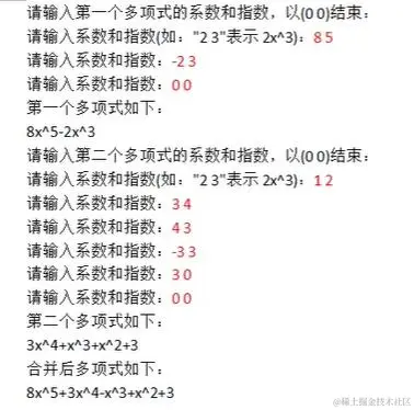 输入两个多项式并将其合并