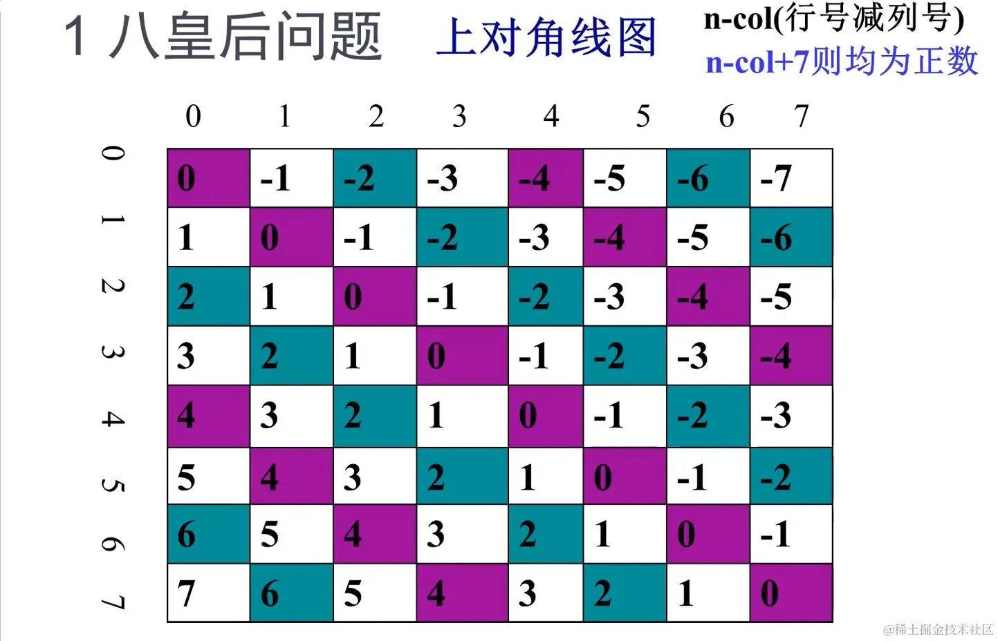 d1[n - i + 7] = 0; // 记录这条上对角线是危险的