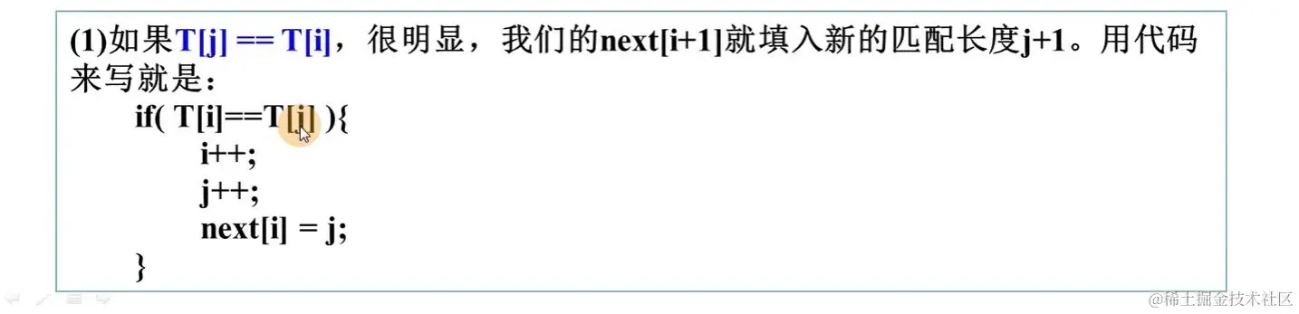 if (j == -1 || T[i] == T[j]) {