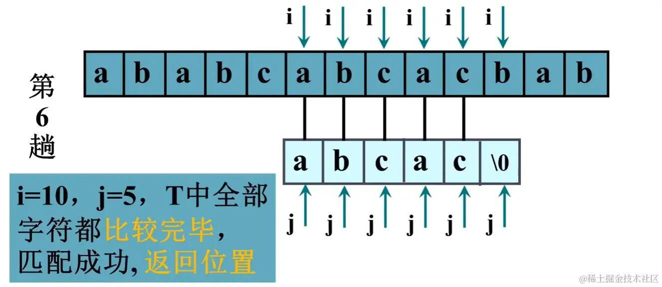 if (T[j] == '\0') return start; //也可以return i-j;