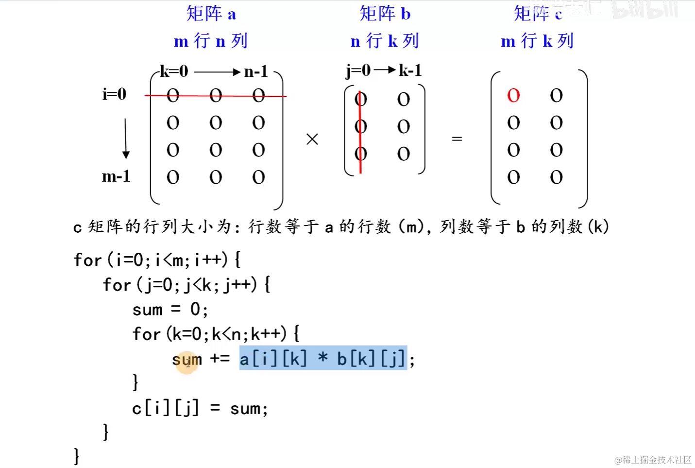 sum += a.getItem(i, k) * b.getItem(k, j);