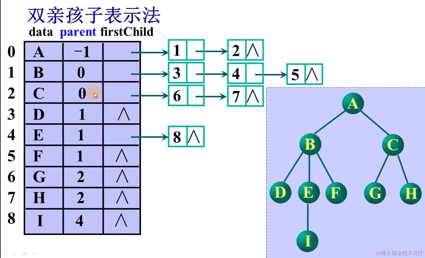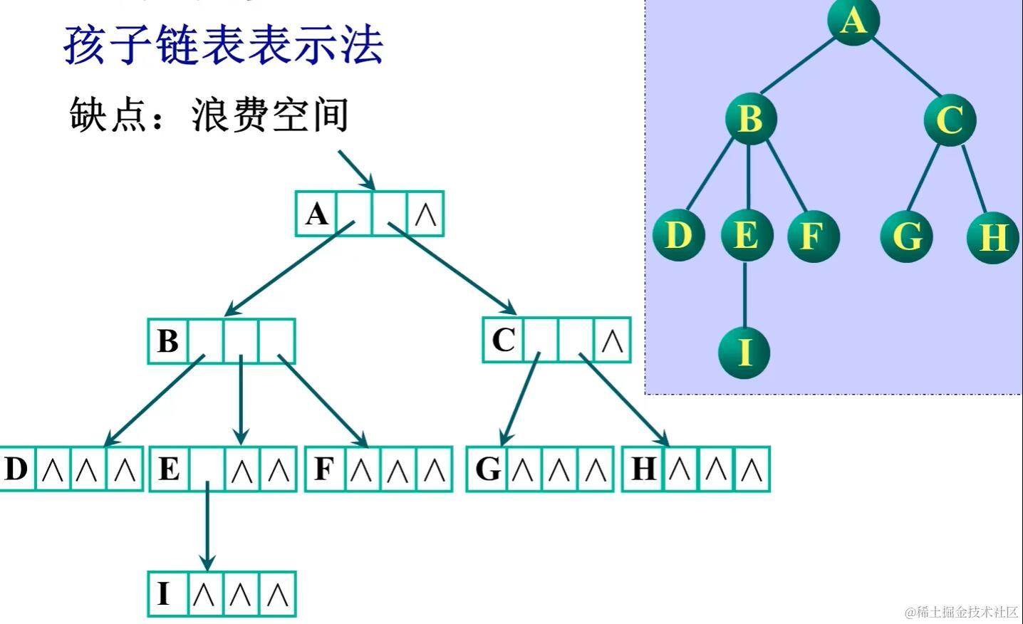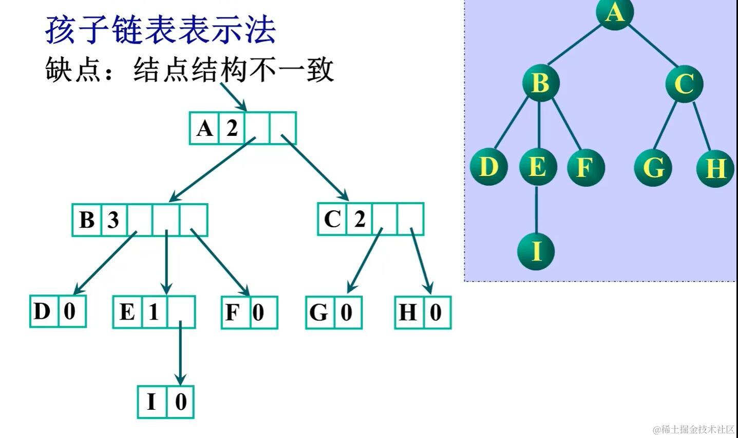树(逻辑结构、存储结构) GHR 2021-05-14 413 阅读1分钟 声明:图片及内容基于www.bilibili.com/video/BV1o5… 树的逻辑结构 树的定义 树的基本术语 树结构和线性结构的比较 树的抽象类型定义 树的遍历操作 树的存储结构 双亲表示法 孩子链表表示法 改进,多存储节点的度,使指针域的个数等于节点度的个数 双亲孩子表示法 孩子兄弟表示法