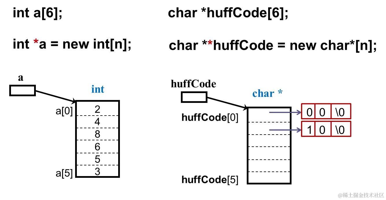 delete [] huffCode[i]; //每个huffCode里的元素都是字符串,及char数组