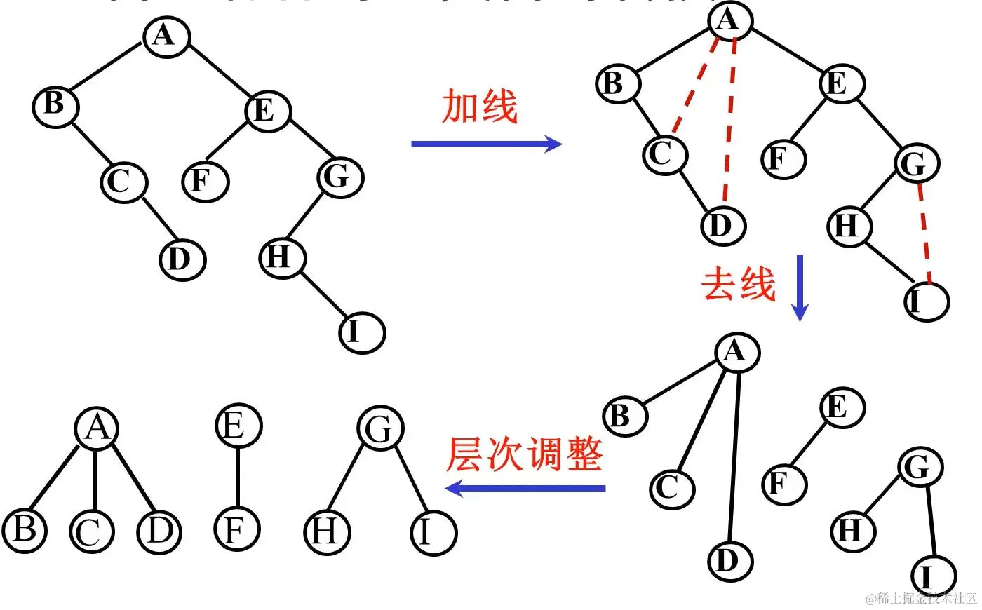 2.保留双亲与第一个孩子连线,删除与其他孩子的连线