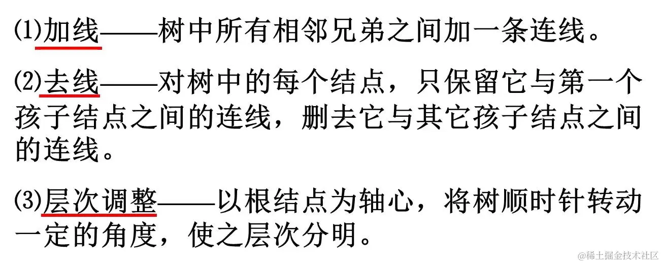 3.顺时针转动使其层次分明(原有的线保持其原有孩子关系,加的线全部变为右孩子)