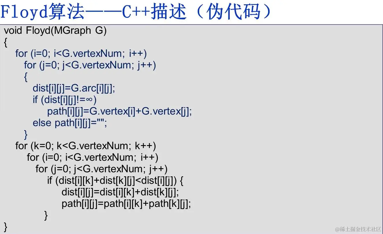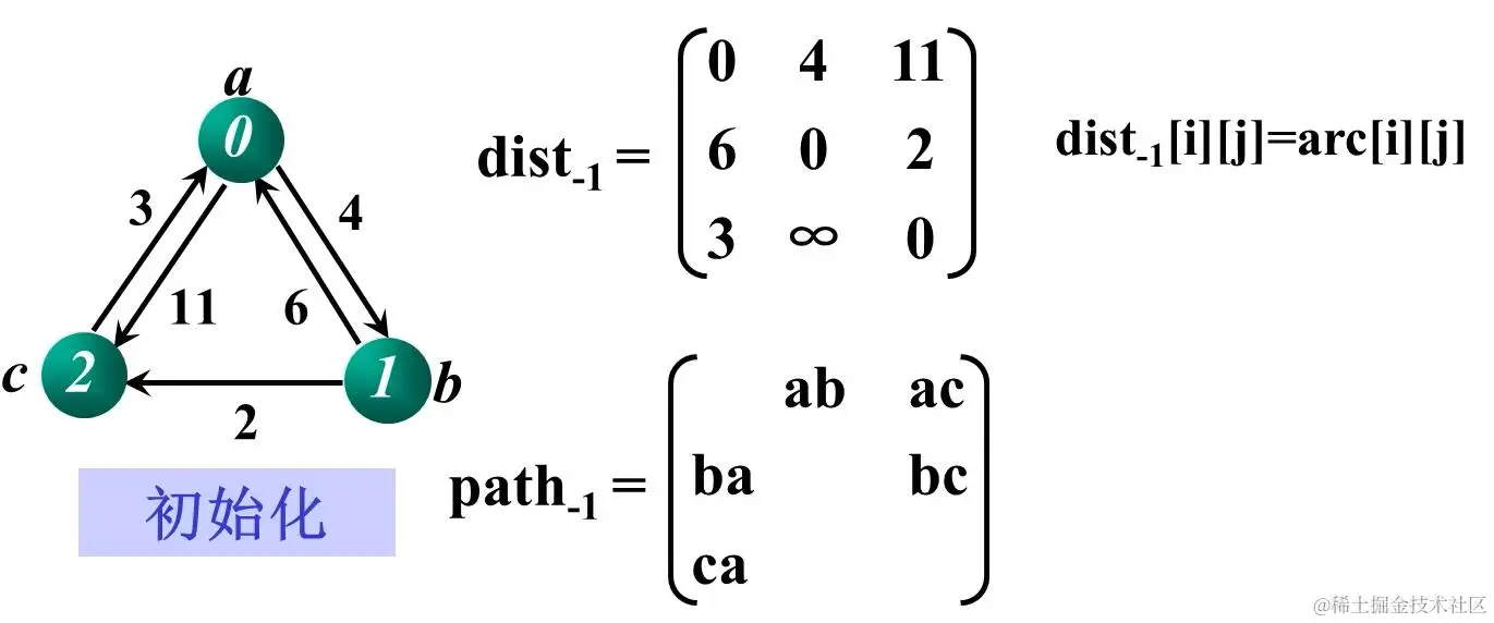 dist[i][j]=arc[i][j]; //dist数组初始化