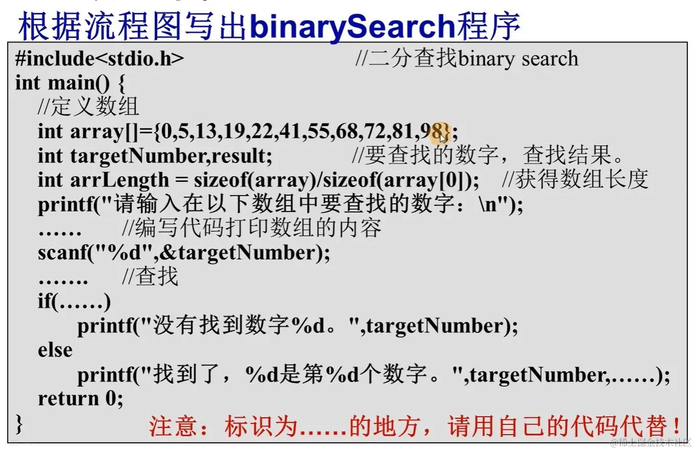 cout<<"找到了,"<<target<<"是下标为"<<mid<<"的元素"<<endl;