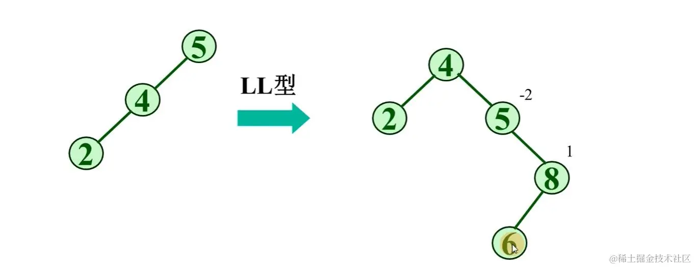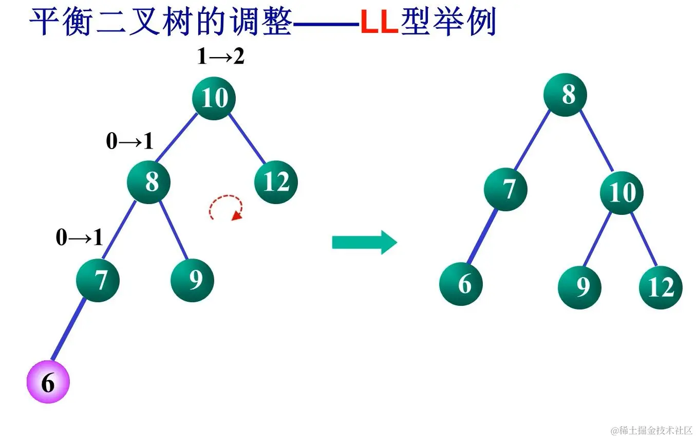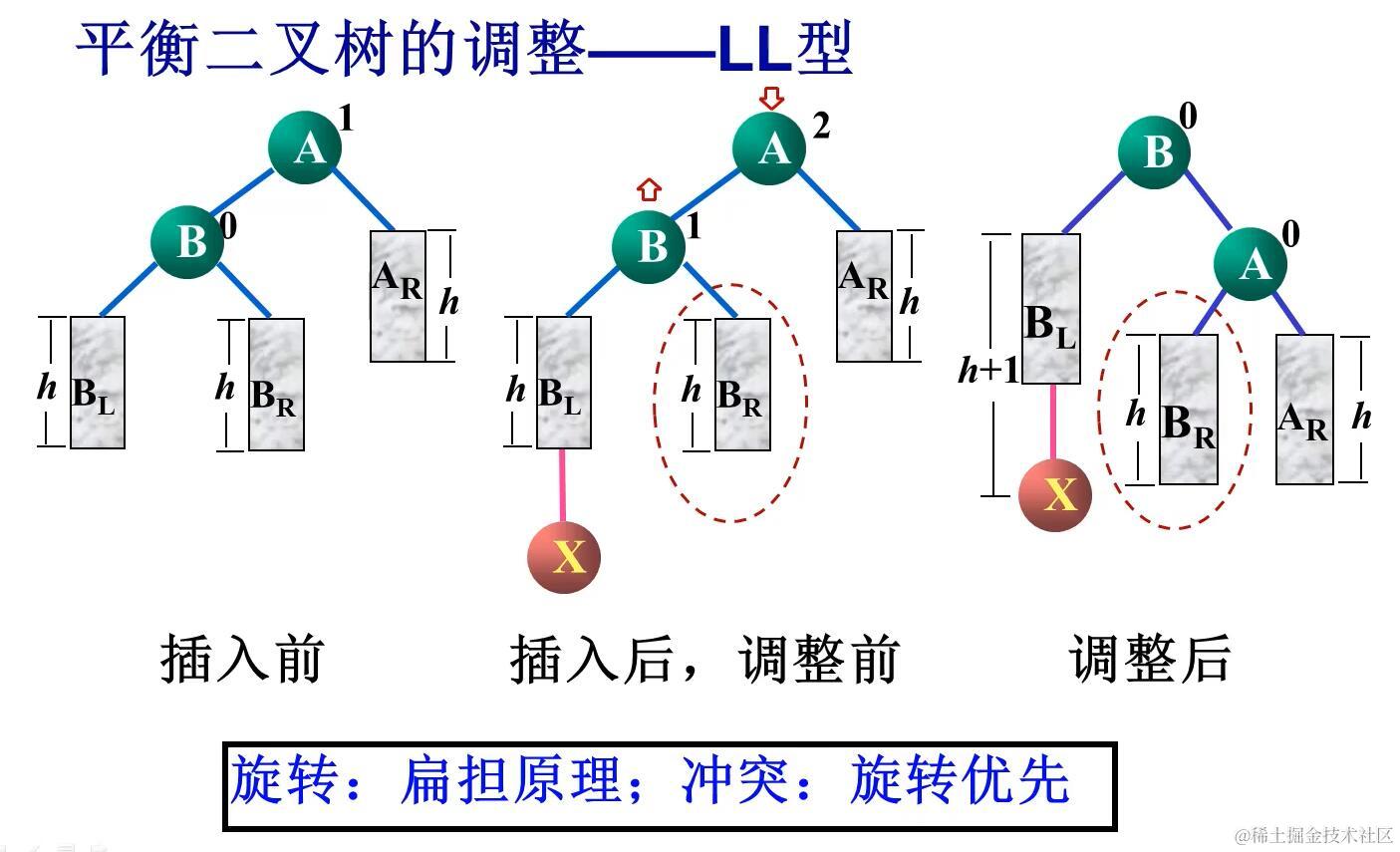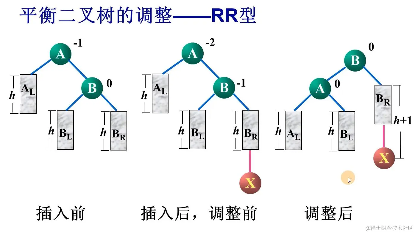 ③各子树按大小关系连接(AL和BR不变,BL调整为A的右子树)。