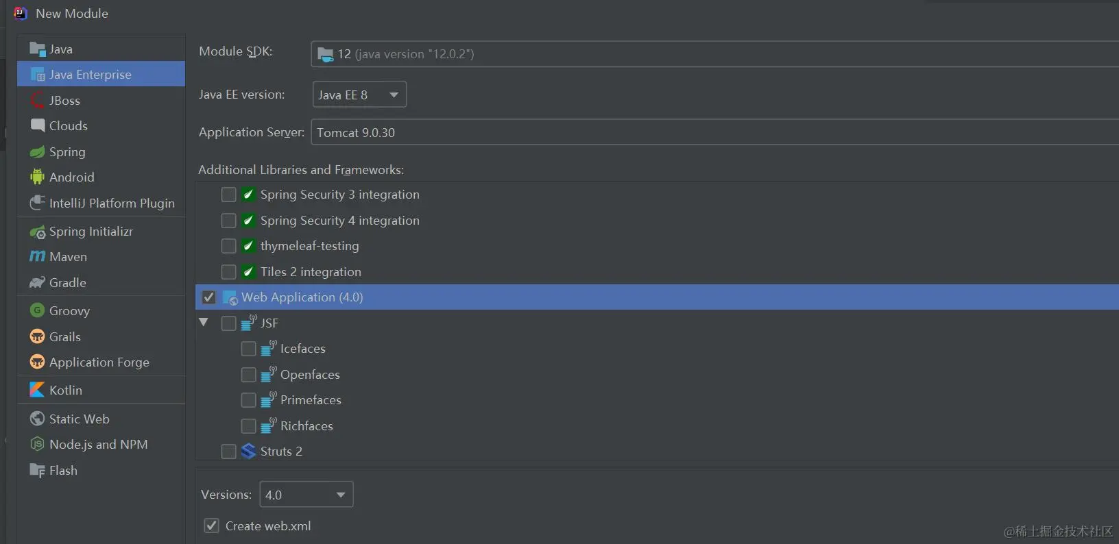 File -- New -- Module 选择Java EnterPrise,再勾选Web Application