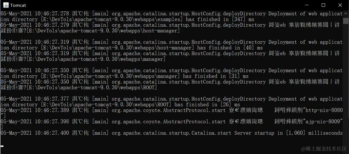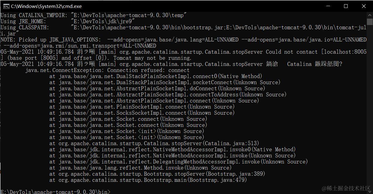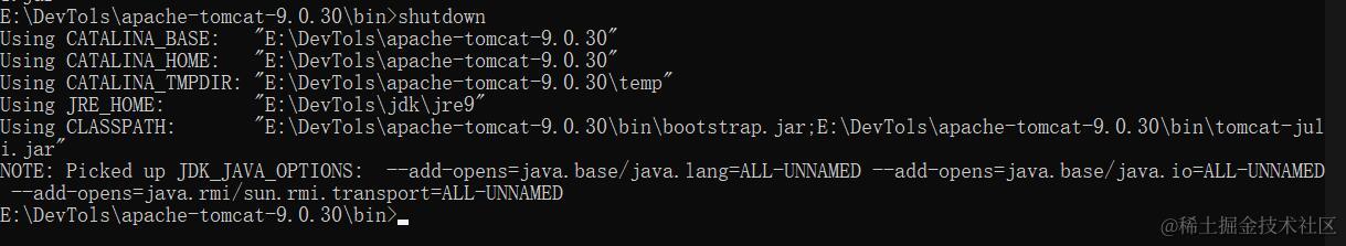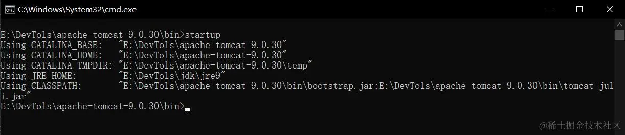 在E:\DevTols\apache-tomcat-9.0.30\bin目录下运行CMD