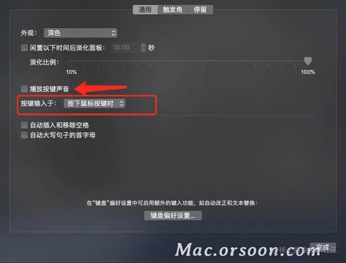6.单击复选框以在使用“辅助功能键盘”时启用键盘声音,单击下拉菜单以设置何时键盘上的键应注册为“已按下”。
