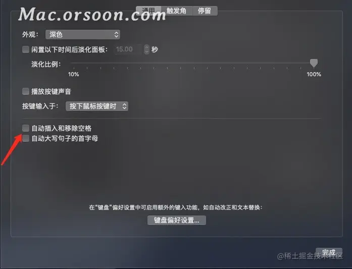 7.单击复选框,以使“辅助功能键盘”自动插入和删除空格并大写句子。