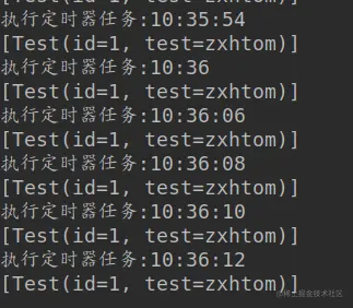 System.out.println("执行定时器任务:" + LocalDateTime.now().toLocalTime());