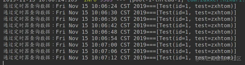 - 执行这个代码我们最好先关掉前面那个静态的定时器。这样看的效果明显点。首先数据库配置的是6秒执行一次。然后把数据改成2秒执行一次。看看效果。