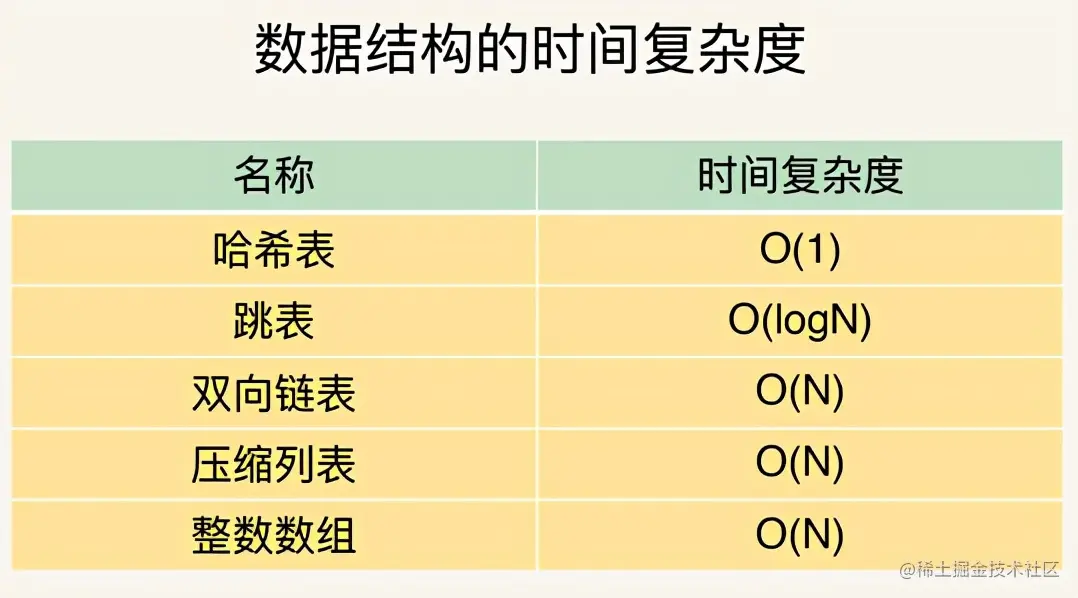 - 第四,例外情况,是指某些数据结构的特殊记录,例如压缩列表和双向链表都会记录表头和表尾的偏移量。对于头插和尾插增删元素可以通过偏移量直接定位,所以时间复杂度也是O(1)。实现快速操
