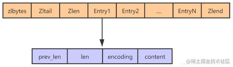 **entry:**压缩列表保存的数据,主要有以下属性