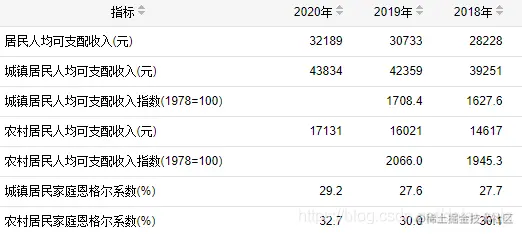 其中恩格尔系数也比较有趣,2020年城镇家庭是29.2,有机会可以再细聊。(恩格尔系数是指家庭中食物支出占消费总支出的比,越大越贫困)