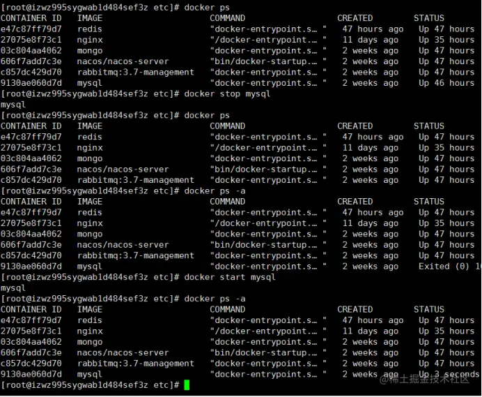 docker start mysql