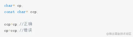 指针赋值时,左边指针所指向的类型必须具有右边指针所指向类型的全部限定符,比如