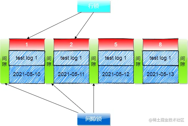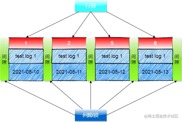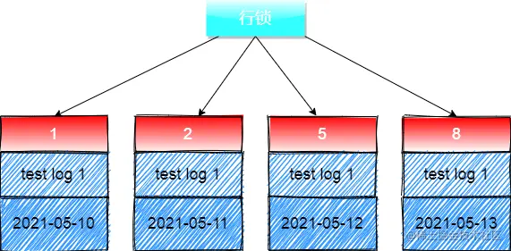 解答:需要知道当前事务使用的隔离级别是 RR可重复读 ,在RR隔离级别下是存在 间隙锁 的,在聚簇索引中除了加行锁之外,还会默认加上 间隙锁,通过 行锁+间隙锁 实现锁表;具体加锁如下图展示: