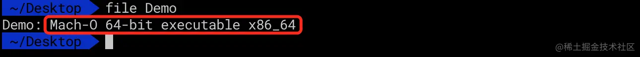 Demo文件是一个Mach-O类型的64位x86_64架构的可执行文件