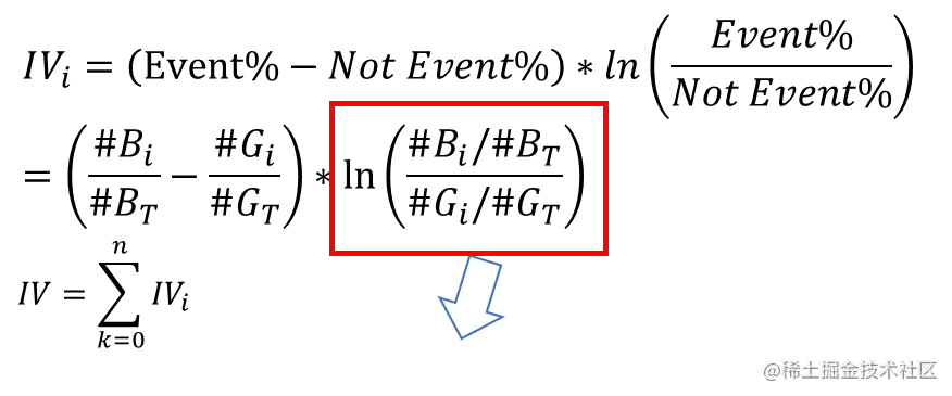 对于某一变量某一分组的WOE,衡量了这组里面的好坏客户的占比与整体样本好坏样本占比的差异