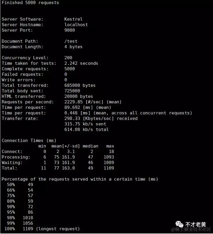 老黄平时用的比较多的是Apache Bench,当然,jmeter、wrk和vegeta也都是非常不错的。