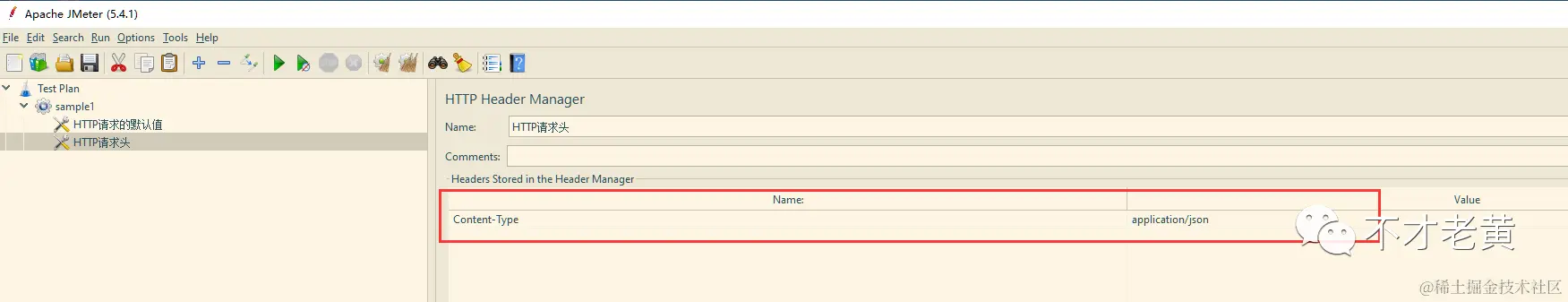 测试接口是 JSON 格式的,所以要把 Content-Type 和 application/json 配置上去。