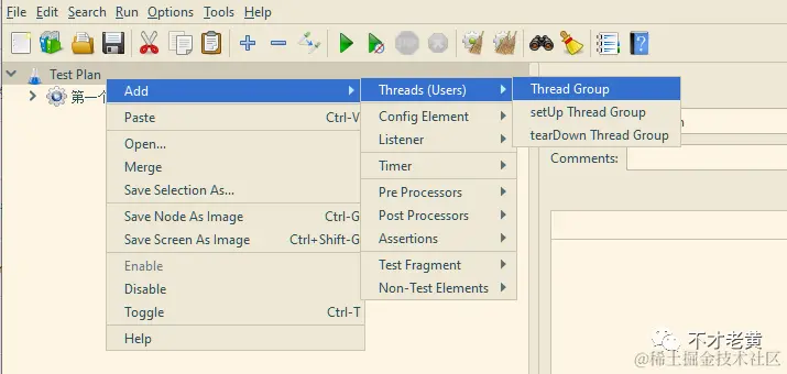 在测试计划添加一个线程组 (Thread Group)