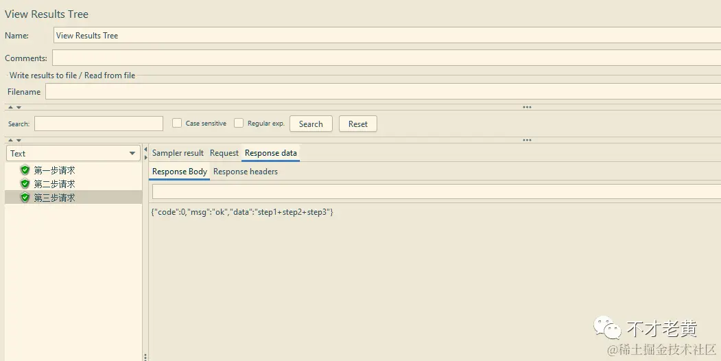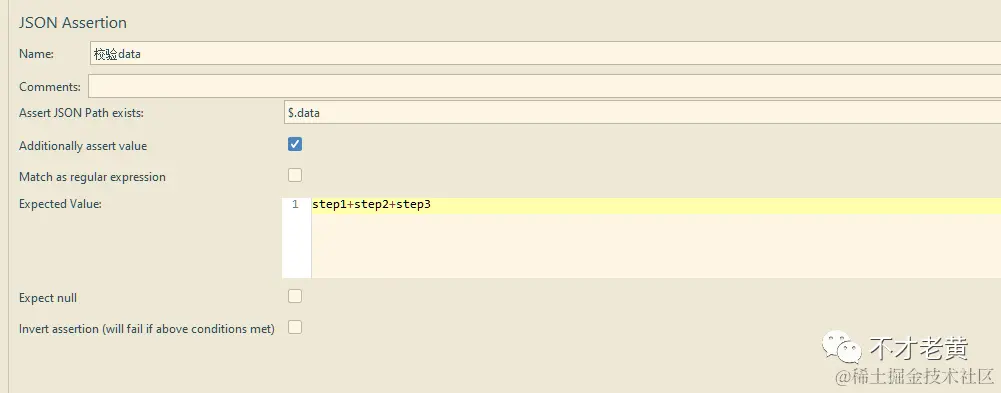 步骤三还要加一个 JSON 断言,确定返回的 data 是期望值。