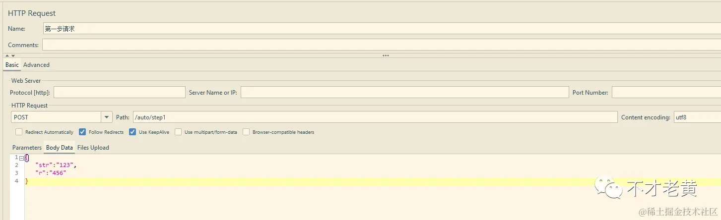 步骤二也是一个 HTTP 请求,所以这里也是添加,不一样的地方是参数这一块。