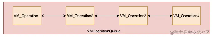 VMThread 里面有个 VMOperationQueue 队列,用于存放一个一个连在一起的 VM 操作。