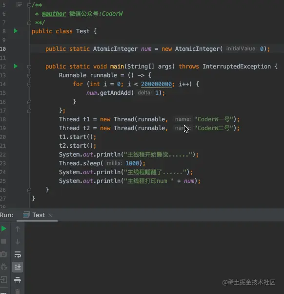 - 主线程睡眠 1 秒,1 秒之后醒过来打印此时的 num 值
