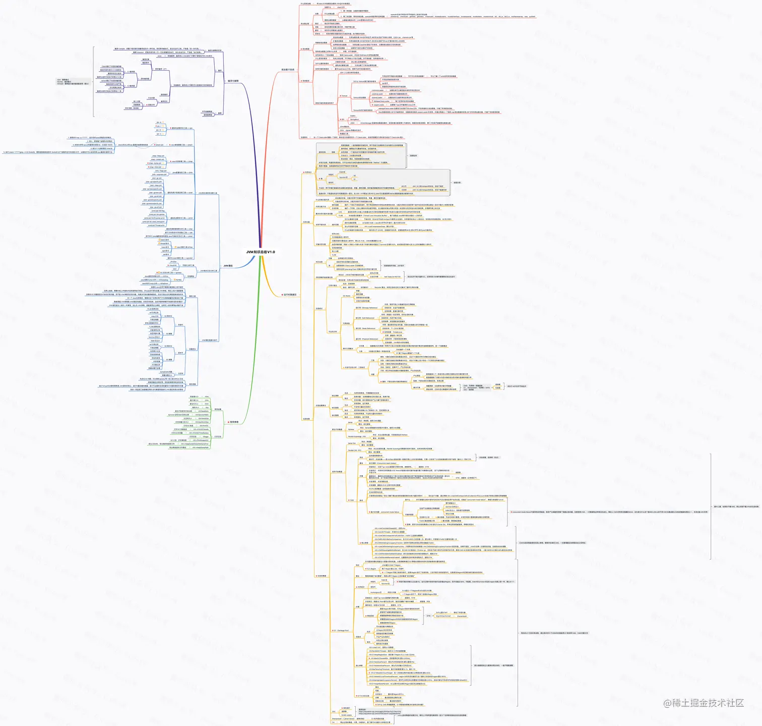 思维导图的制作参照了大量的书籍和博客,包括但不限于《深入理解 Java 虚拟机》、美团技术团队文章、阿里技术团队文章、R 大的文章、寒泉子大大的调优文章。