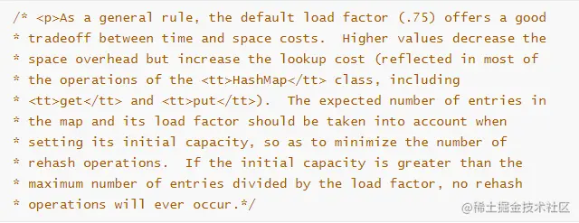经过前面的分析,基本上为什么是0.75的答案也就出来了,这是时间和空间的权衡。当然这个答案不是我自己想出来的。答案就在源码上,我们可以看看: