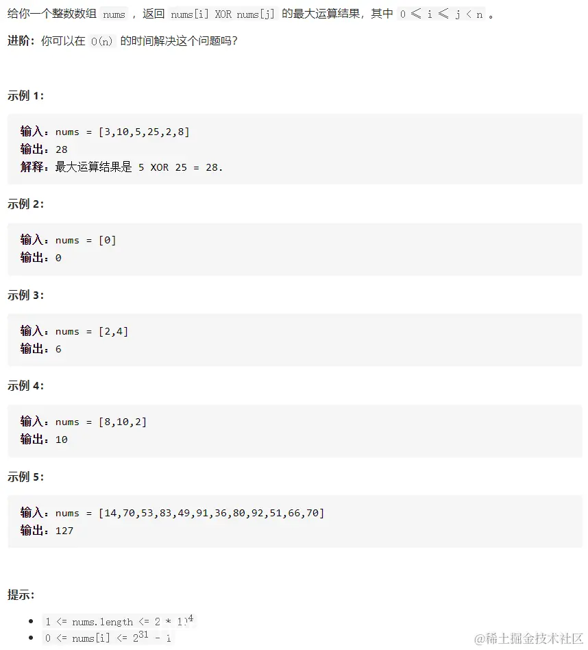 第4题:数组中两个数的最大异或值